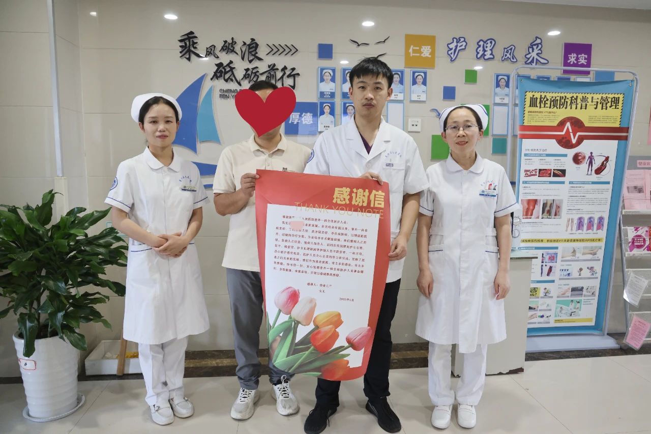 出院当天,说话还不甚清晰的邵奶奶眼含泪水,紧紧握住医生的手表达感激,她的家人也给普外一科全体医护人员送来感谢信。