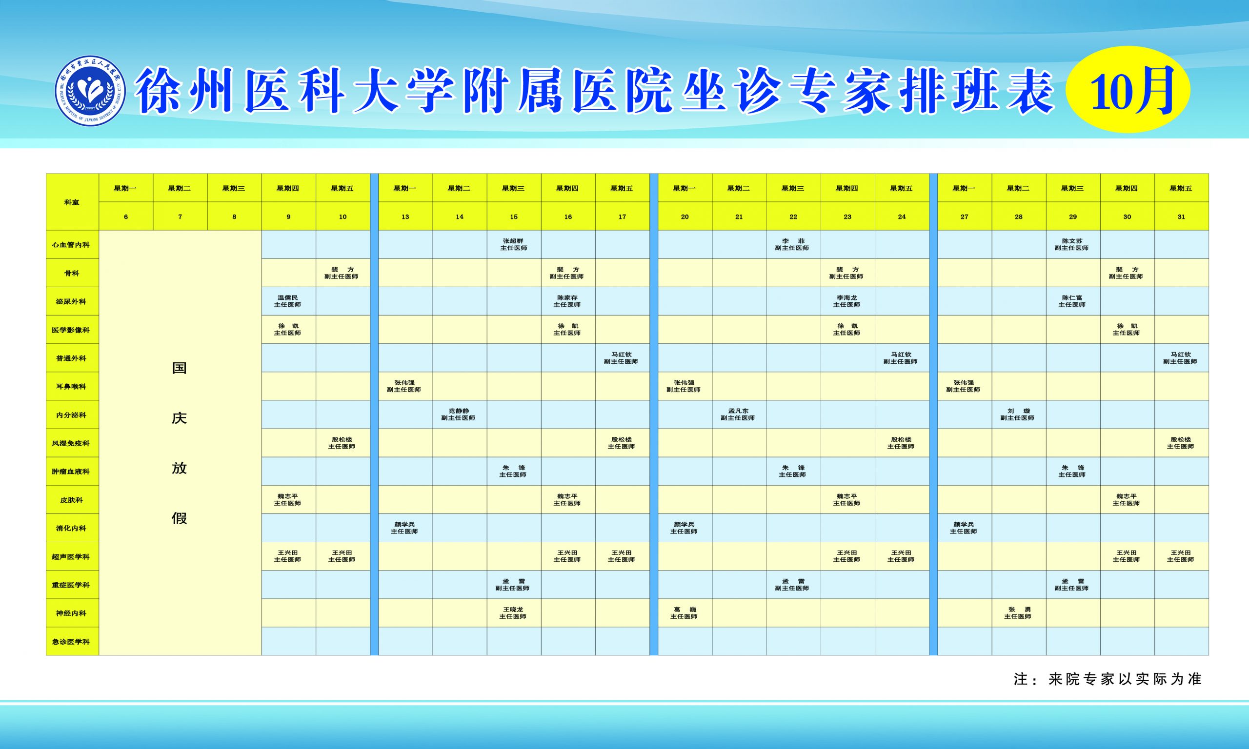 2025年10月份徐州医科大学附属医院专家团队来贾名单新鲜出炉,包括心血管内科、骨科、神经内科、泌尿外科、超声医学科等众多知名专家在我院开展门诊、手术、教学、查房等医疗工作,让老百姓在家门口就能享受到三级甲等医院知名专家优质医疗服务,欢迎广大群众前来咨询问诊。