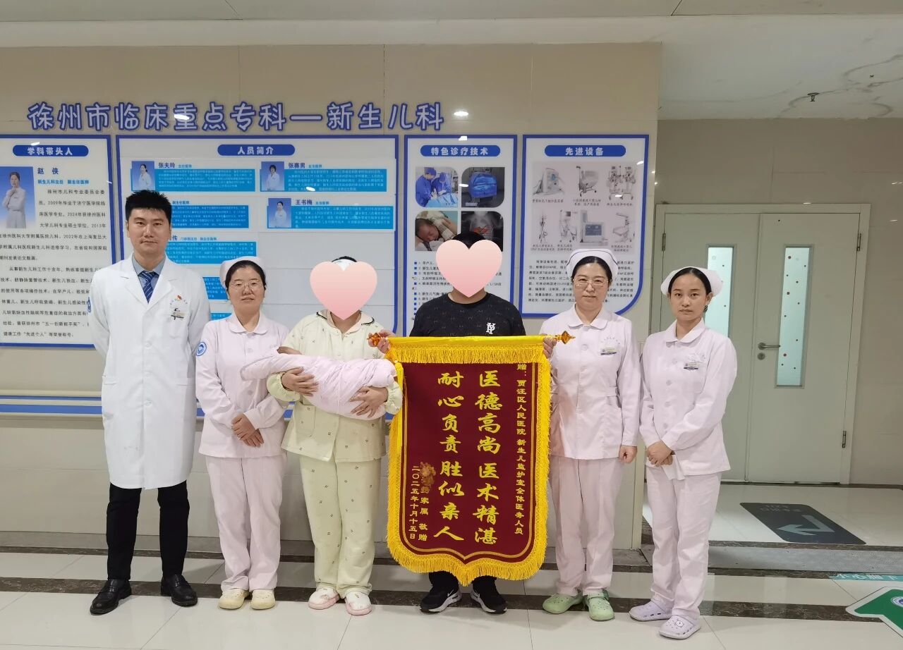 近日,贾汪区人民医院新生儿监护(NICU)室收到了一封来自宝宝安安家属的锦旗和深情感谢信。