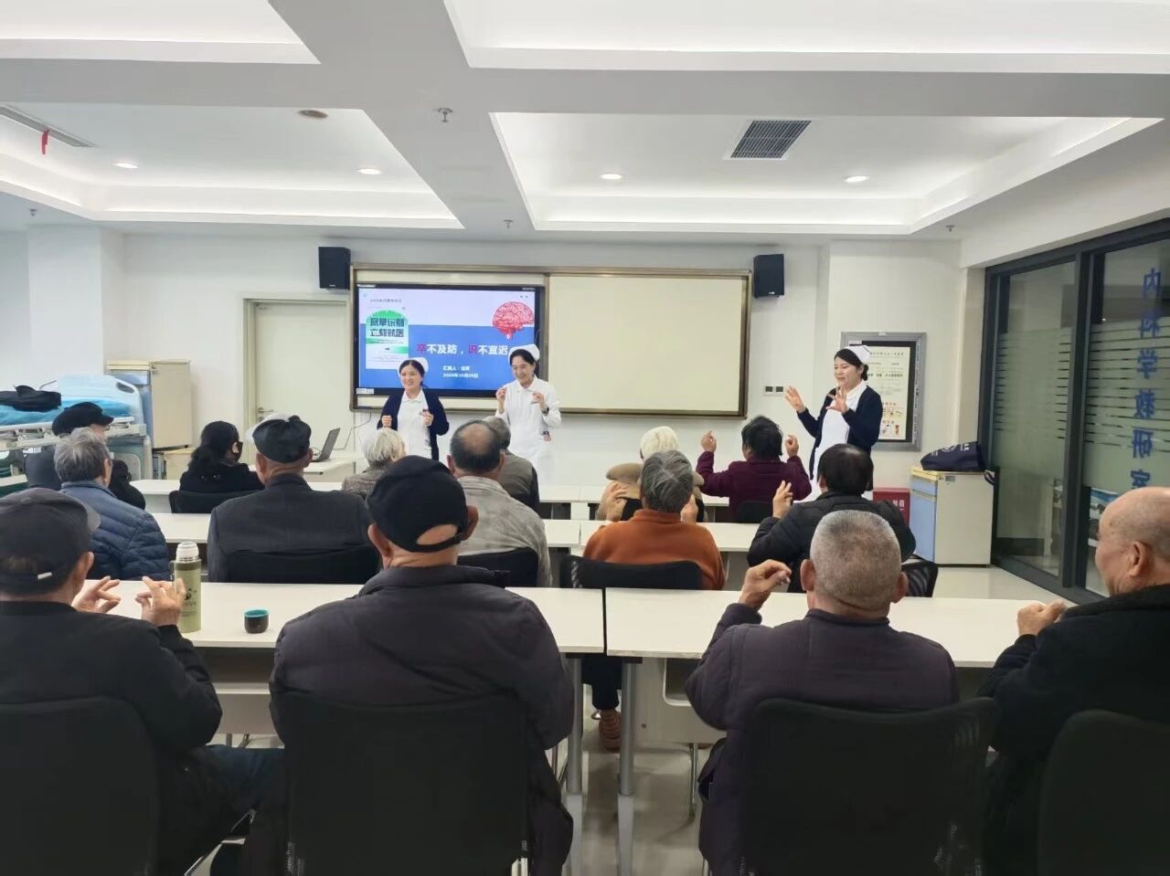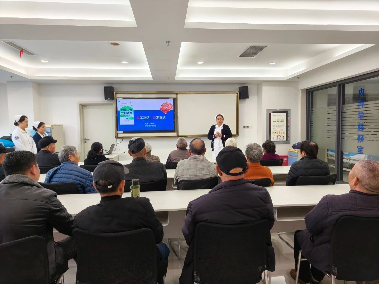 科普讲座环节,神经内科以“‘卒’不及防、‘识’不宜迟”为题,为在院患者及家属带来了一场生动而实用的健康讲座。课程内容紧密围绕如何快速、准确地识别脑卒中早期症状(如面部不对称、手臂无力、言语不清等),以及发病后的紧急处理流程和日常预防策略,强调了“时间就是大脑”的救治理念。