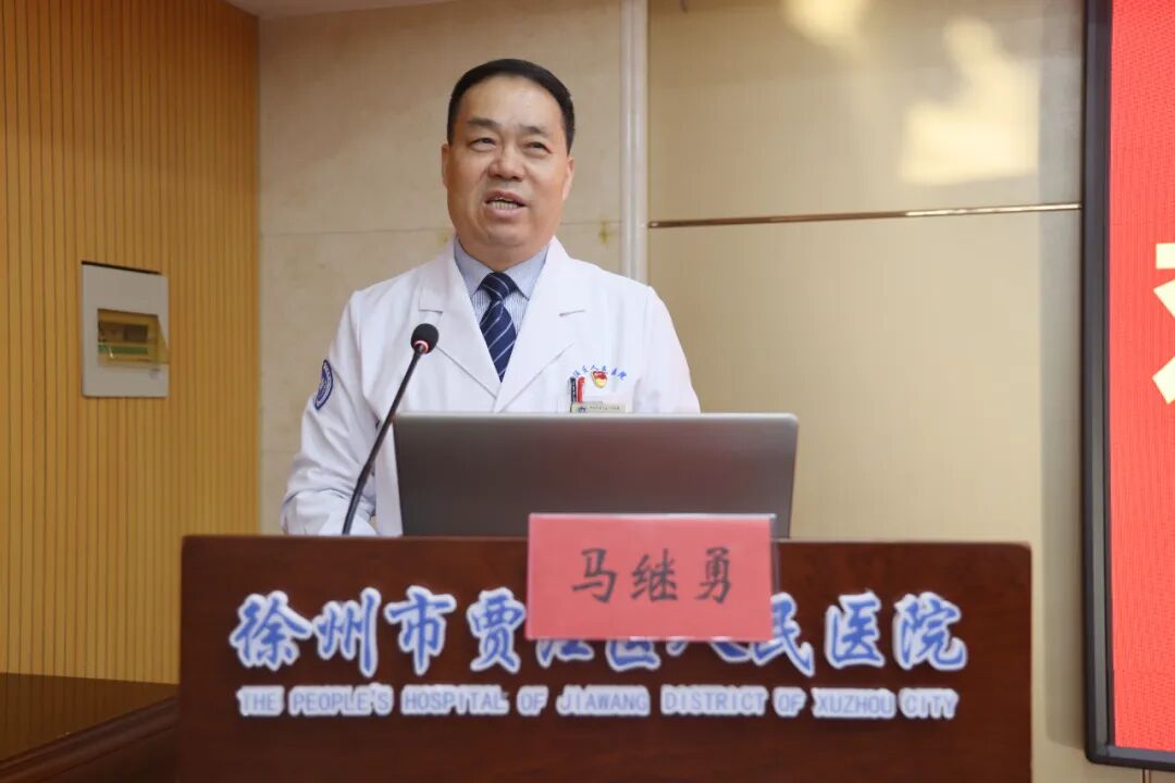 马继勇书记在致辞中对与会专家同仁表示热烈欢迎。他指出,消化道肿瘤防治事关群众生命健康,早诊早治已成为国家“十四五”卫生健康战略的核心环节。贾汪区人民医院自2023年成功获批徐州地区唯一省级孵化中心分中心以来,积极承担区域消化诊疗体系建设重任,同步授牌21家省级孵化基地,持续推动优质医疗资源向基层延伸。