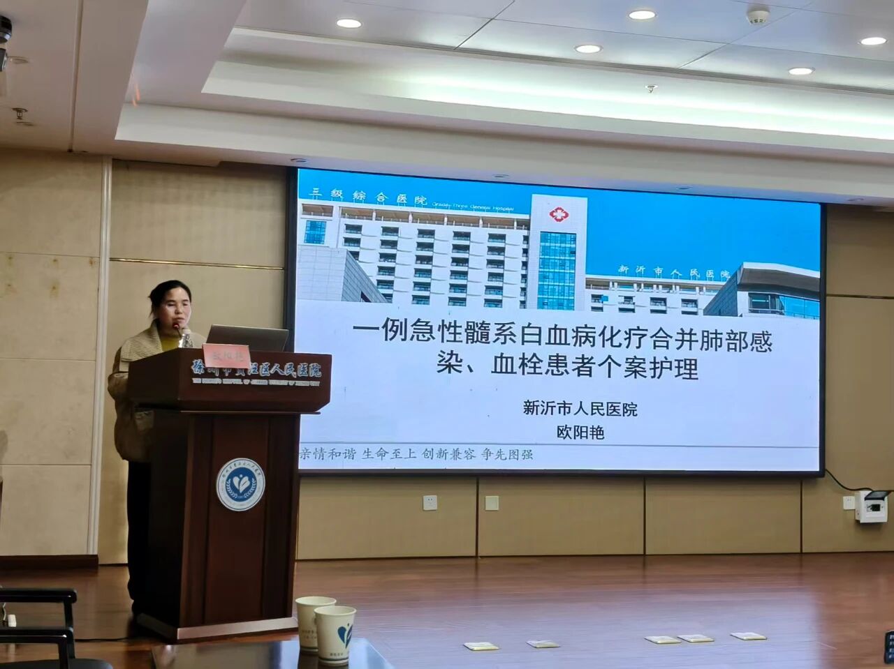 新沂市人民医院欧阳艳作《一例急性髓系白血病化疗合并肺部感染、血栓患者个案护理》授课。