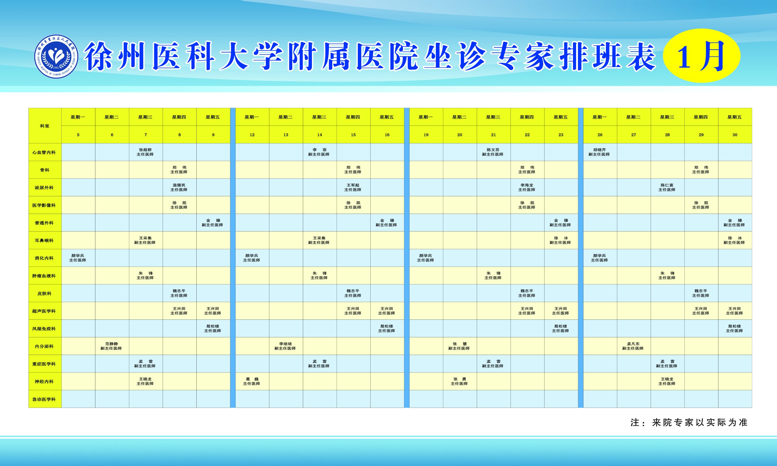 2026年1月份徐州医科大学附属医院专家团队来贾名单新鲜出炉,包括心血管内科、骨科、神经内科、泌尿外科、超声医学科等众多知名专家在我院开展门诊、手术、教学、查房等医疗工作,让老百姓在家门口就能享受到三级甲等医院知名专家优质医疗服务,欢迎广大群众前来咨询问诊。