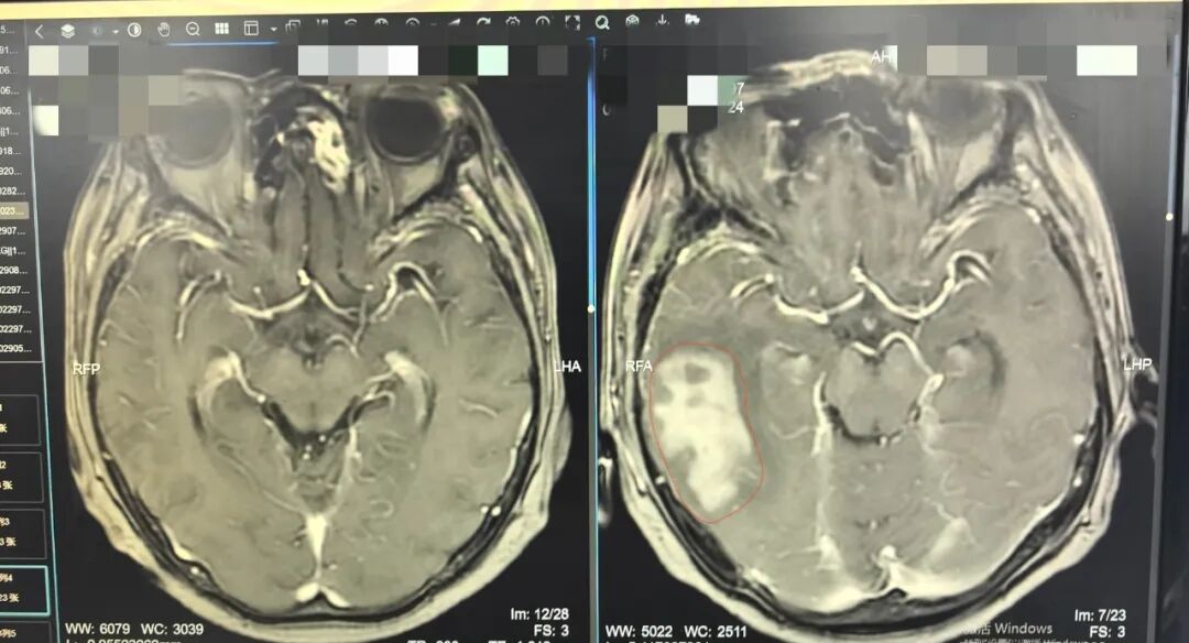 2025年5月,患者无明显诱因出现头痛、头晕,经检查诊断为脑内淋巴瘤。病理提示肿瘤增殖指数较高,属于预后较差的亚型,治疗挑战较大。