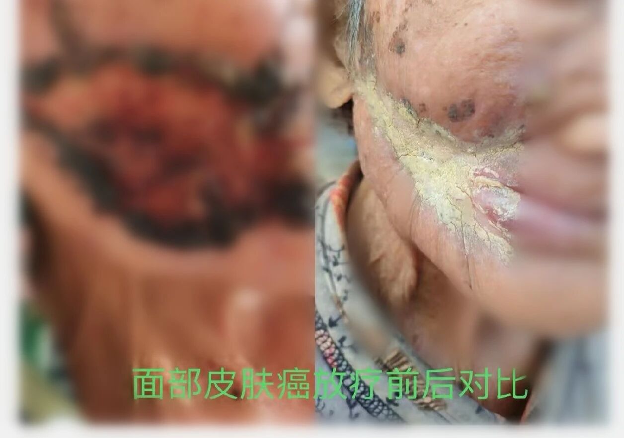 经过规范周期的放射治疗,患者面部病灶达到临床缓解,皮肤愈合良好。肿瘤未再继续进展,患者的生活质量得到显著改善,重拾生活信心。